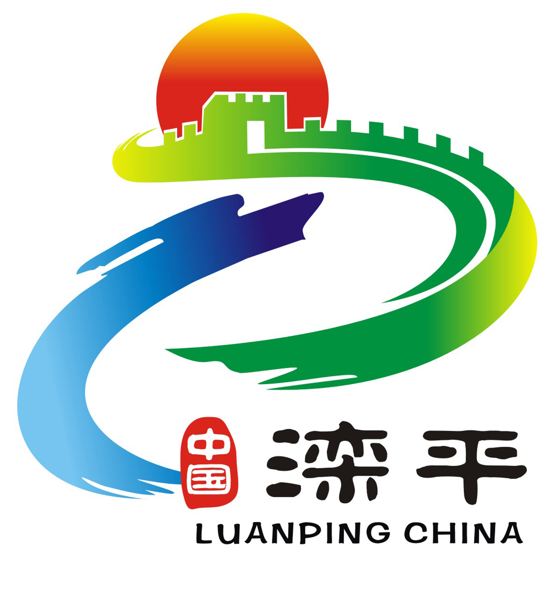 县标以滦平的首字母LP为基础,运用传统书法笔触为手法,将太阳、长城、腾龙、山水风光、和谐纽带、中国印等元素融入其中。构成一个开放包容、众志成城的艺术造型。 图案色彩鲜明、内容丰富、通俗易懂。红黄渐变的太阳色昭示着滦平人民团结一心、众志成城,社会经济各项事业蓬勃升起;绿色充满生机与活力,代表着滦平生态宜人的自然风光;蓝色寓意深邃与河流,象征着滦平源远流长的历史人文积淀,展现了滦平人民开放、包容的博大胸怀。 整体图案将自然之美与生态之秀有机结合,突出了滦平的地域特色和人文内涵,体现了滦平人民崇德重信、开放包容、坚韧不拔、众志成城的精神风貌。 | |||||||